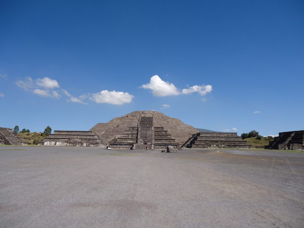 Esta cidade asteca apresentava um gigantesco conjunto arquitetônico no  qual se destacavam a “Pirâmide do Sol “ ( 60 metros de altura ,225 metros de laço na base quadrada , resultando em um milhão de metros cúbicos de  terra revestida de pedra ) e a “Pirâmide da Lua “(42 metros de altura , 1600 metros quadrados na base).